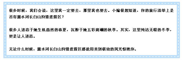 | 相遇最美人間雪,邂逅露水河長(zhǎng)白山狩獵度假區(qū)! |